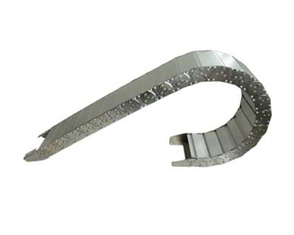 (3)单元链节由左右链板和上下盖板组成,拖链每节都能打开,装拆方便,不必穿线,打开盖板后即可把电缆、油管、气管、水管等放入拖链。